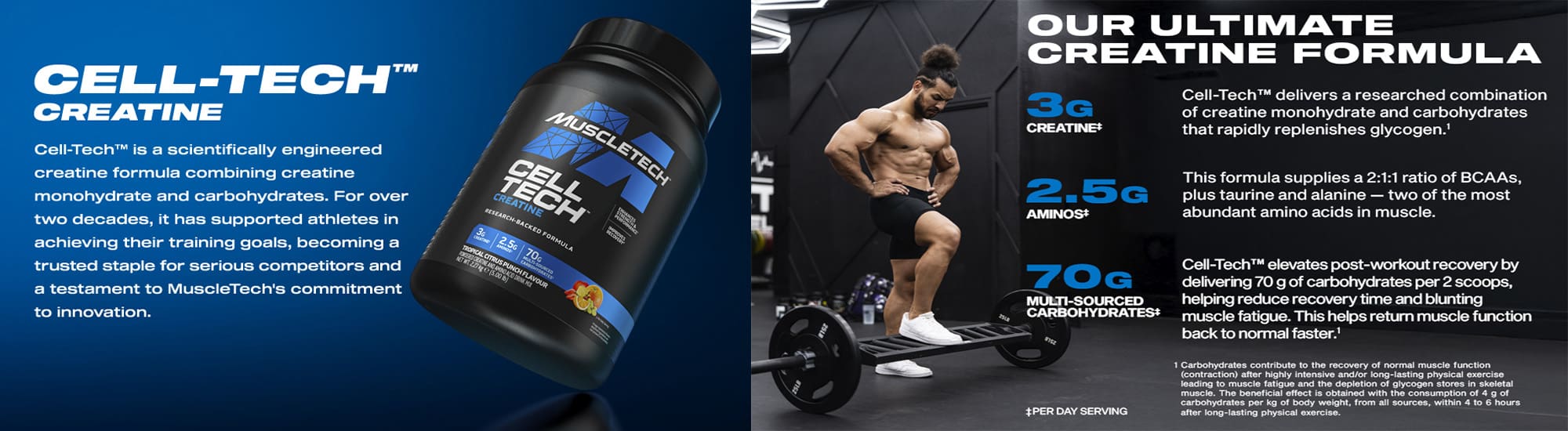 مکمل Cell-Tech نقش مهمی در بهبود علمکرد ورزشی و کمک به افزایش حجم عضلات بدن دارد و روند ریکاوری عضلات را بهبود بخشیده و در افزایش قدرت موثر است .